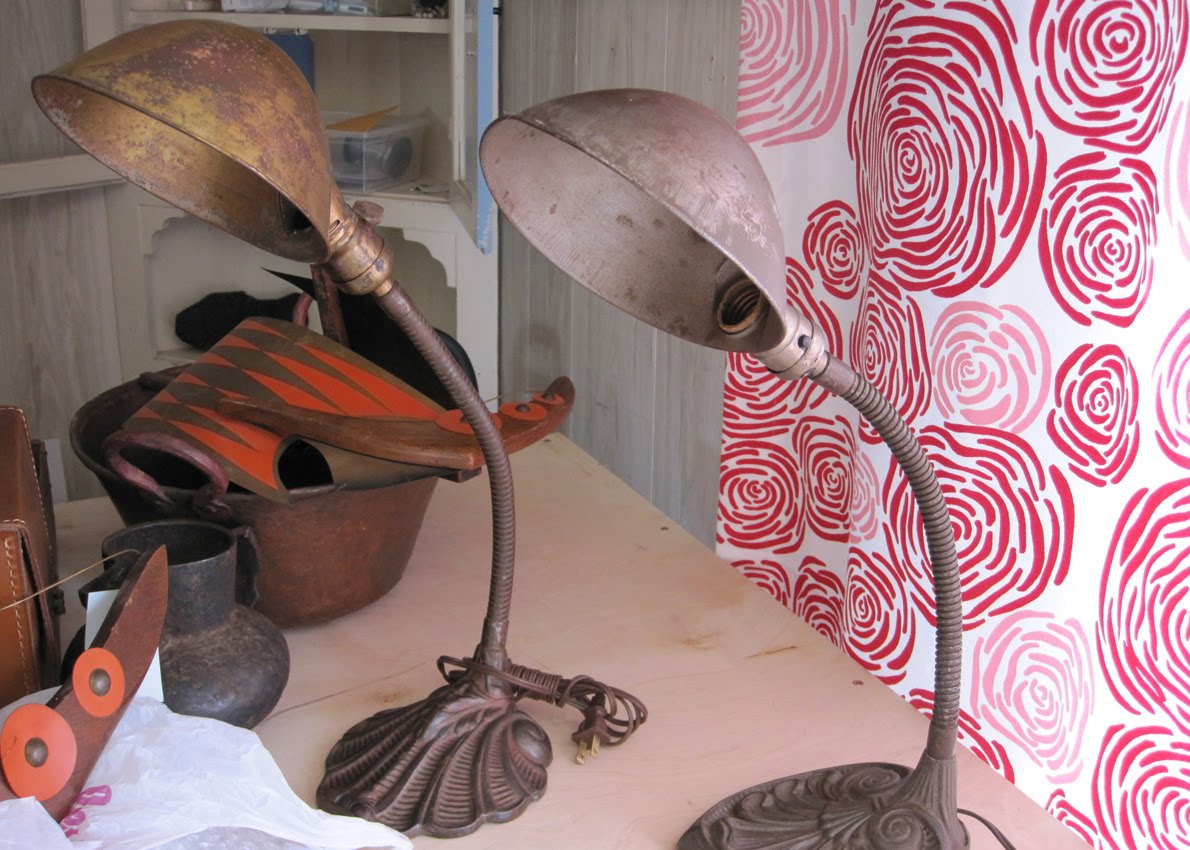 Thanks to a wonderful group of customers, our sale has been a huge success and we have made lots of room for new goodies. First thing this morning, I headed off to the flea market to see what I could find. I had every intention of taking some pictures of cool stuff to post but with dog leash in one hand, cart in the other and a huge blue IKEA bag over my shoulder (not to mention envelope with money and a pen to keep track of things), digging my camera out didn't happen. I ended up doing three trips back and forth to the car before heading home, unloading, taking shots of the loot (below) and heading off to open the store. Crazy, fun way to start a Sunday -- even the dog was exhausted by noon!