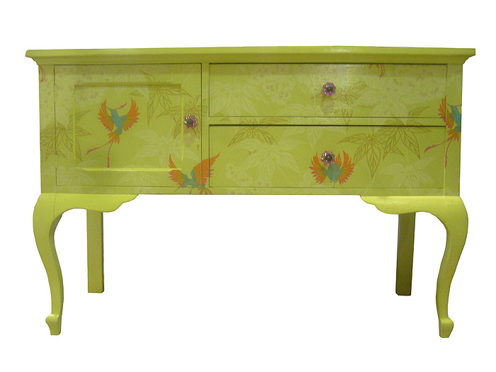 If you looking to reinvent an old dresser with wallpaper, this website featuring the work of talented Brit